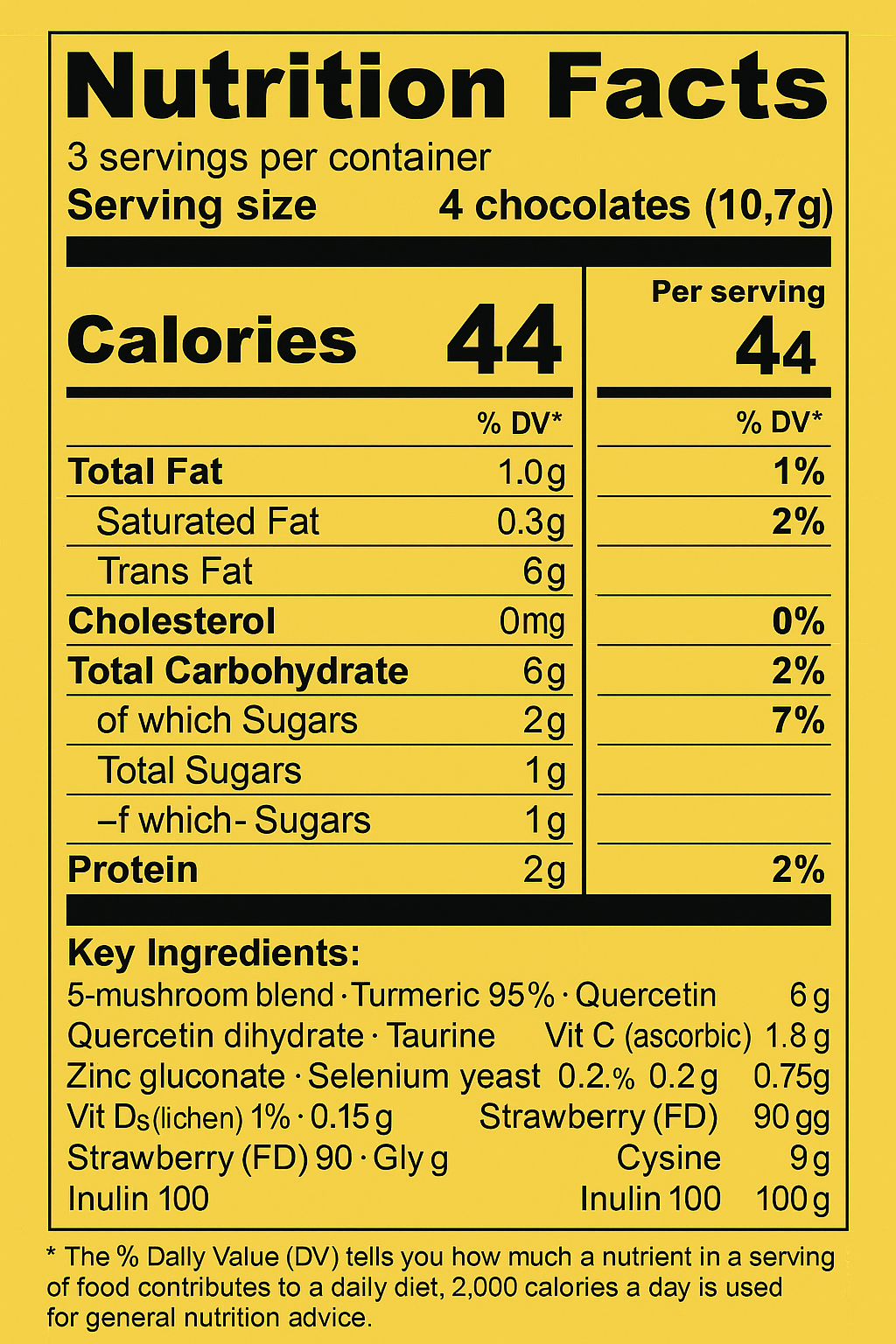 ImuPlus combines antioxidant-rich dark chocolate with clinically researched immune-supporting nutrients. It’s designed to help your body stay resilient against daily stressors while supporting long-term wellness.