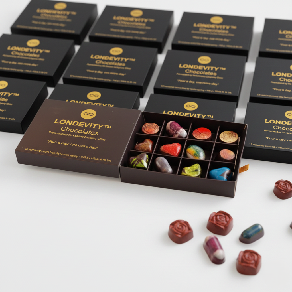 Because Londevity comes in different varieties, you can choose the formula that best fits your lifestyle and health goals—all while enjoying a handcrafted piece of premium chocolate.